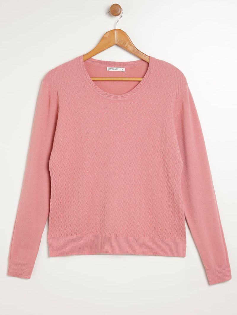 Código Pompéia 46141 Código Completo 10111804614105 Gênero Feminino Confecção Plus Size Idade Adulto Manga Longa Gola Gola Redonda Tecido Tricot Cores Rose