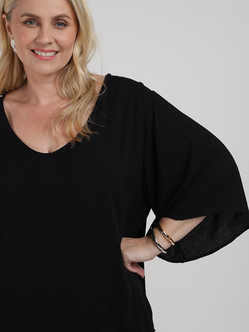 Blusa Manga Sino Ampla Feminina PRETO