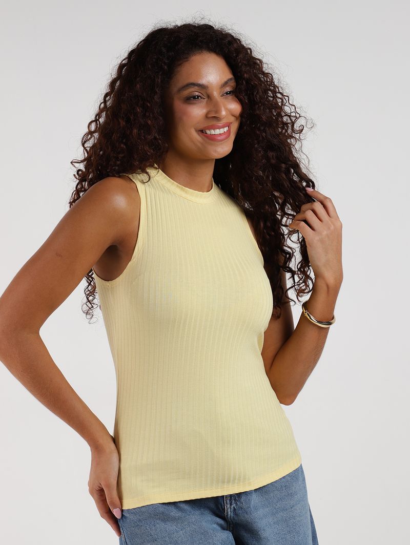 Blusa Regata Canelada Autentique Feminina Amarelo