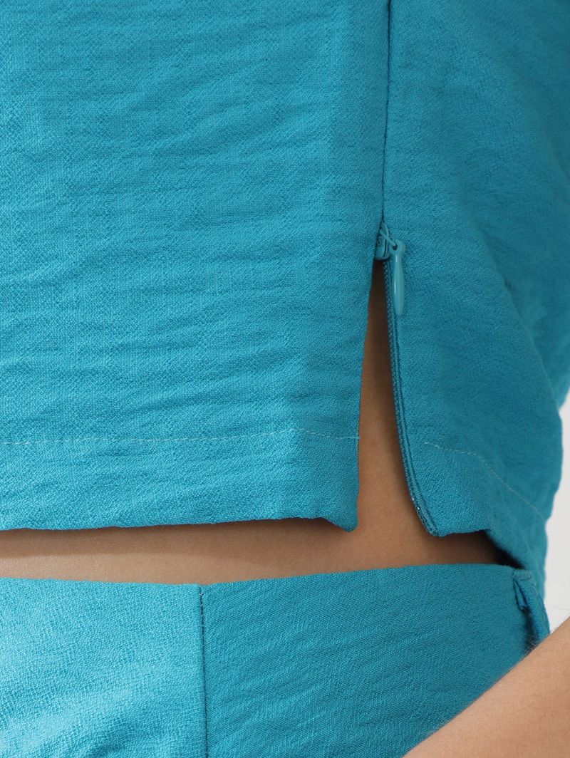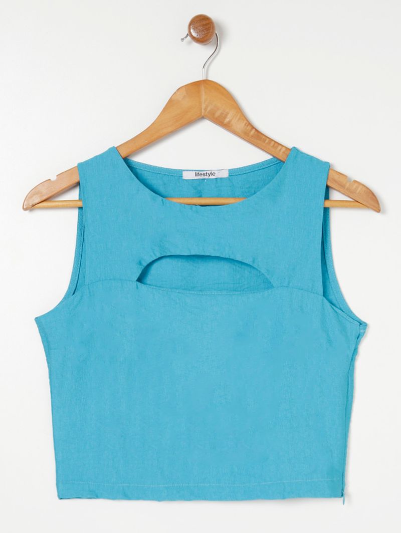 Blusa feminina desenvolvida em tecido plano de viscose e poliamida. O modelo apresenta comprimento cropped. Possui decote redondo, mangas cavadas e recorte vazado no busto que agrega charme à peça. Conta com fechamento feito por zíper em sua lateral e barra com o acabamento simples. O design permite a combinação com tudo, sendo muito versátil e atemporal! Combine com Shorts de Tecido e Rasteiras .