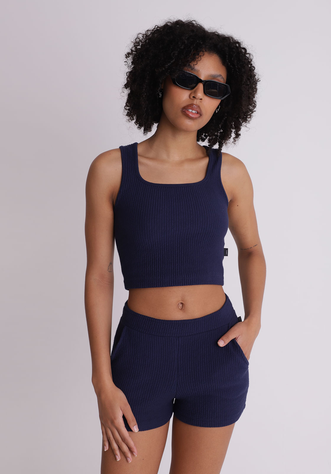 Blusa regata cropped texturizada