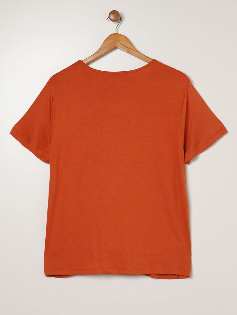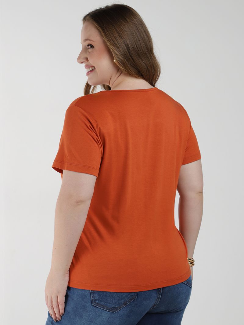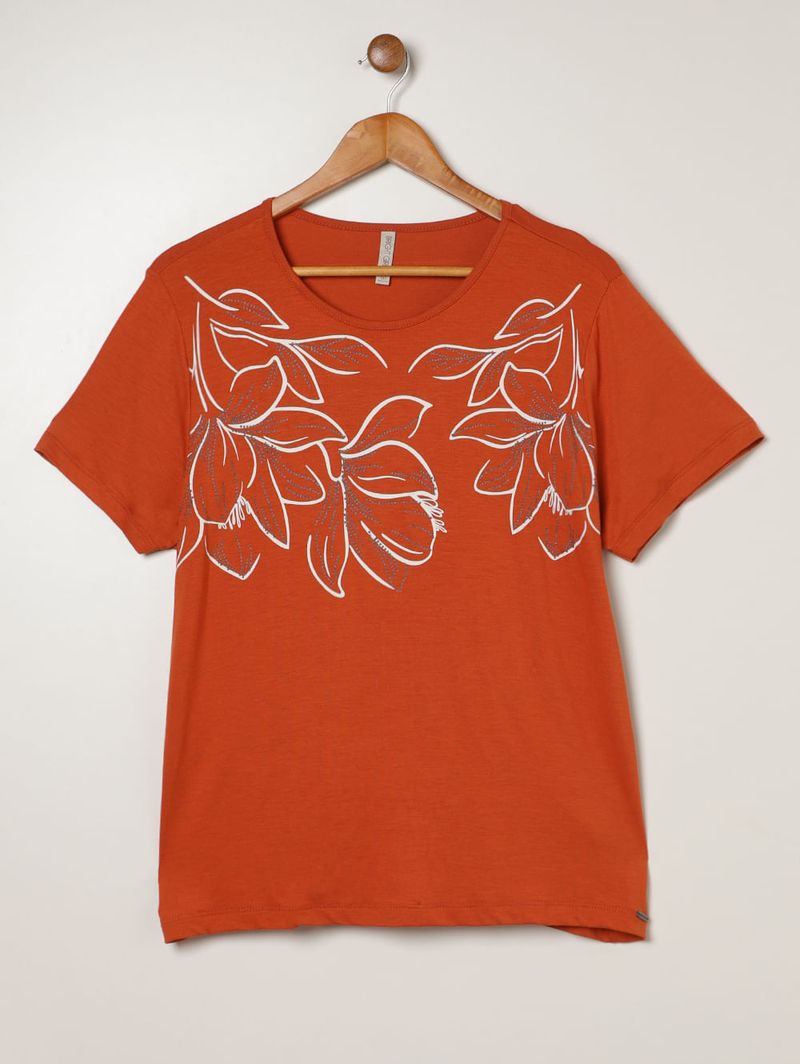 Blusa Silk Floral Manga Curta Plus Size Feminina MARROM