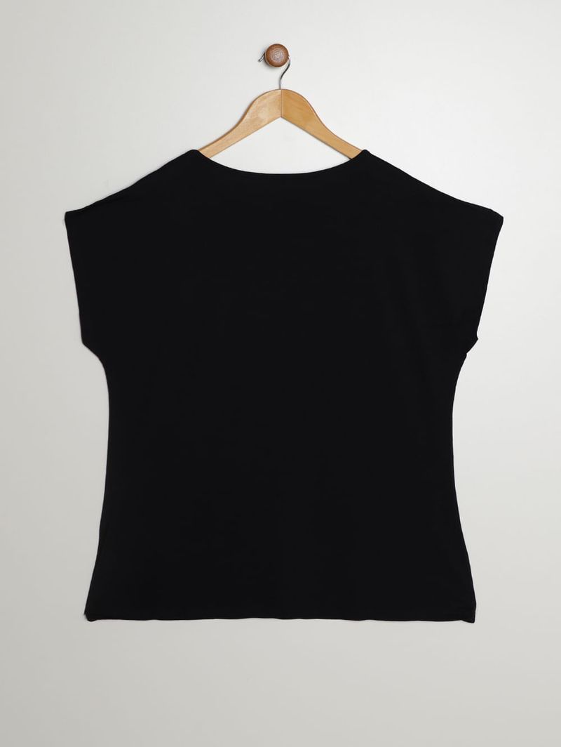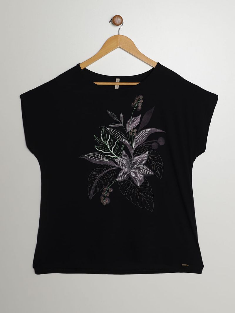 Blusa Silk Floral Manga Curta Plus Size Feminina PRETO