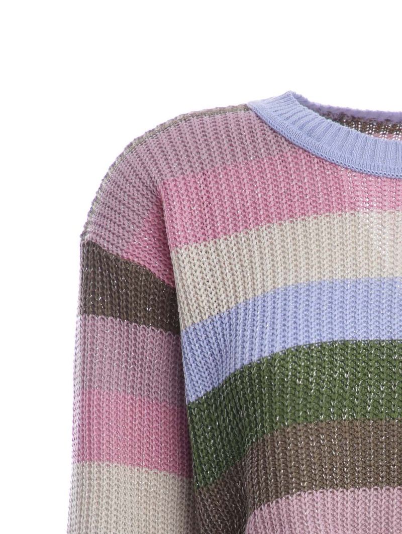Blusão de Tricot Cropped Listrado Feminino Lilás