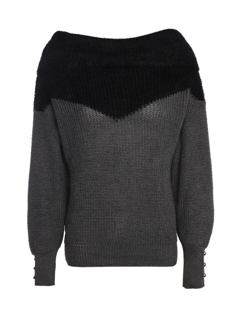 Blusão Tricot Bicolor Gola Alta Feminino CINZA