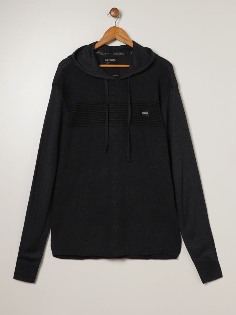 Blusão masculino desenvolvido em tricot leve com toque macio e pontos fechados, ainda conta com textura moderna criada a partir das suas tramas. Apresenta capuz ajustável por cordão, mangas longas com punho e acabamentos em pontos canelados. Conta com aplicação da marca na altura do peito. A escolha certa para os homens que valorizam estilo e praticidade nas suas produções!\n\nMaterial: Tricot\nComposição: 100% poliéster