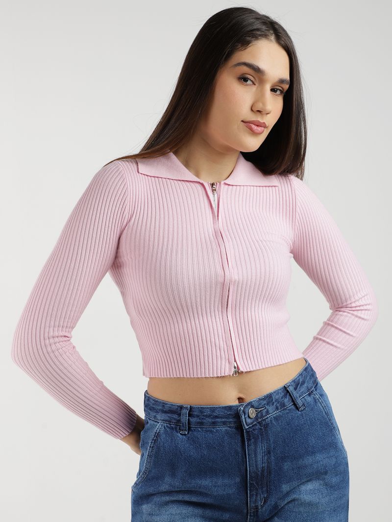 Blusa Tricot Gola Polo Feminina ROSA