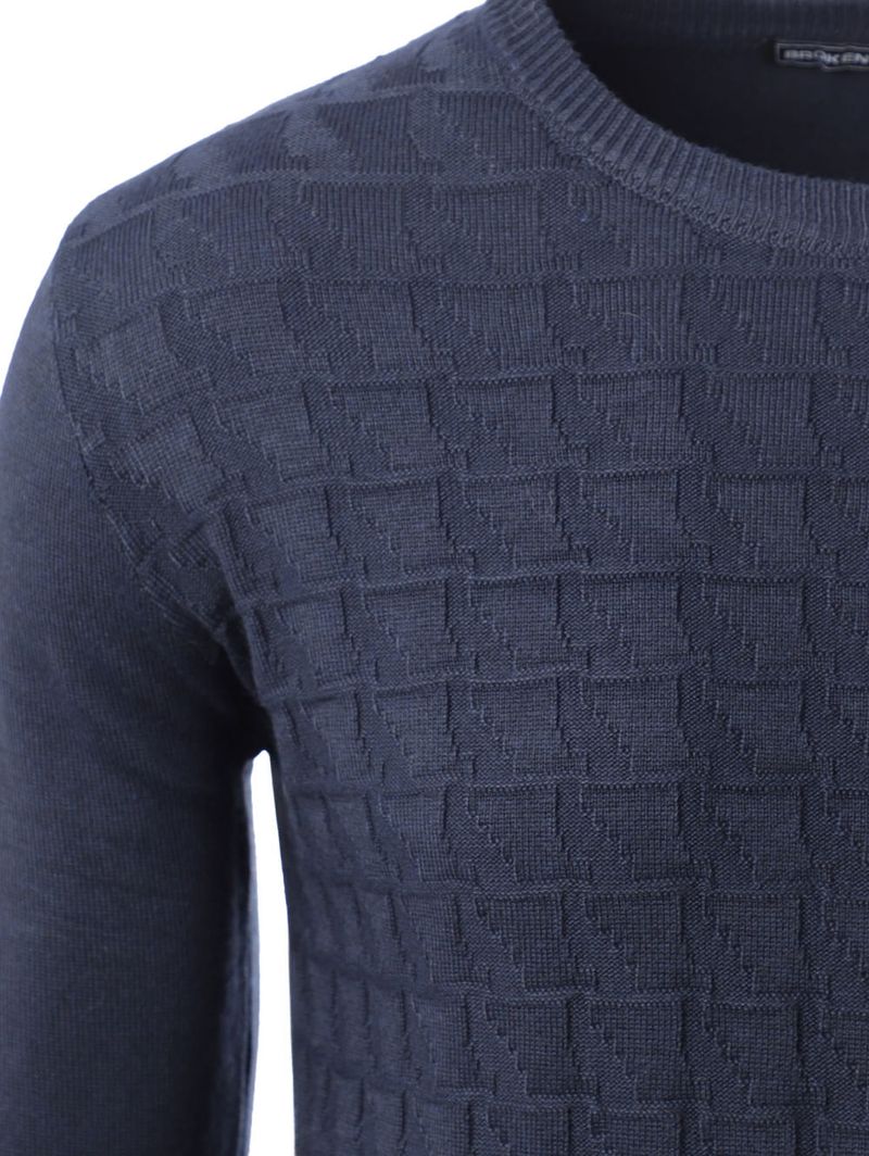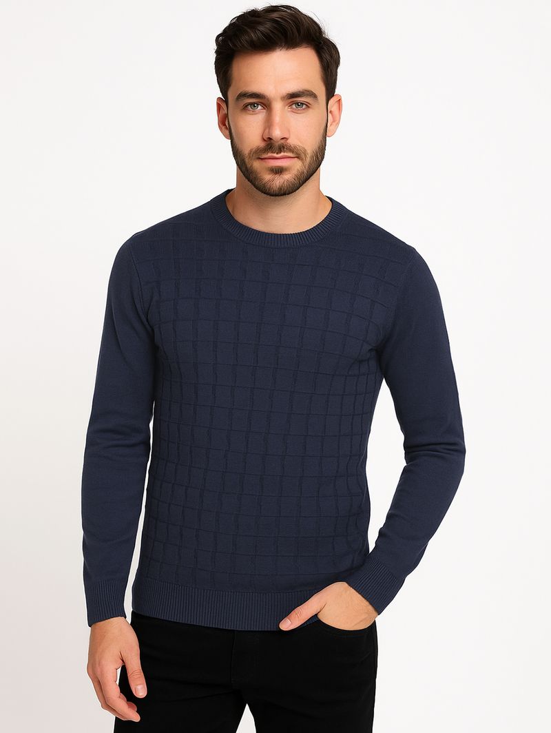 Blusão masculino desenvolvido em tricot leve e macio, um tecido super confortável. O modelo apresenta gola redonda, mangas compridas com punho e barra com acabamento canelado. O seu diferencial fica por conta de texturas na parte frontal que deixam a peça mais bonita. Praticidade e comodidade, a peça perfeita para looks cheios de estilo!\n\nTecido: Tricot\nComposição: 100% poliéster