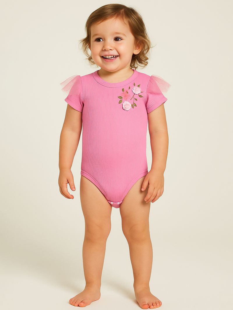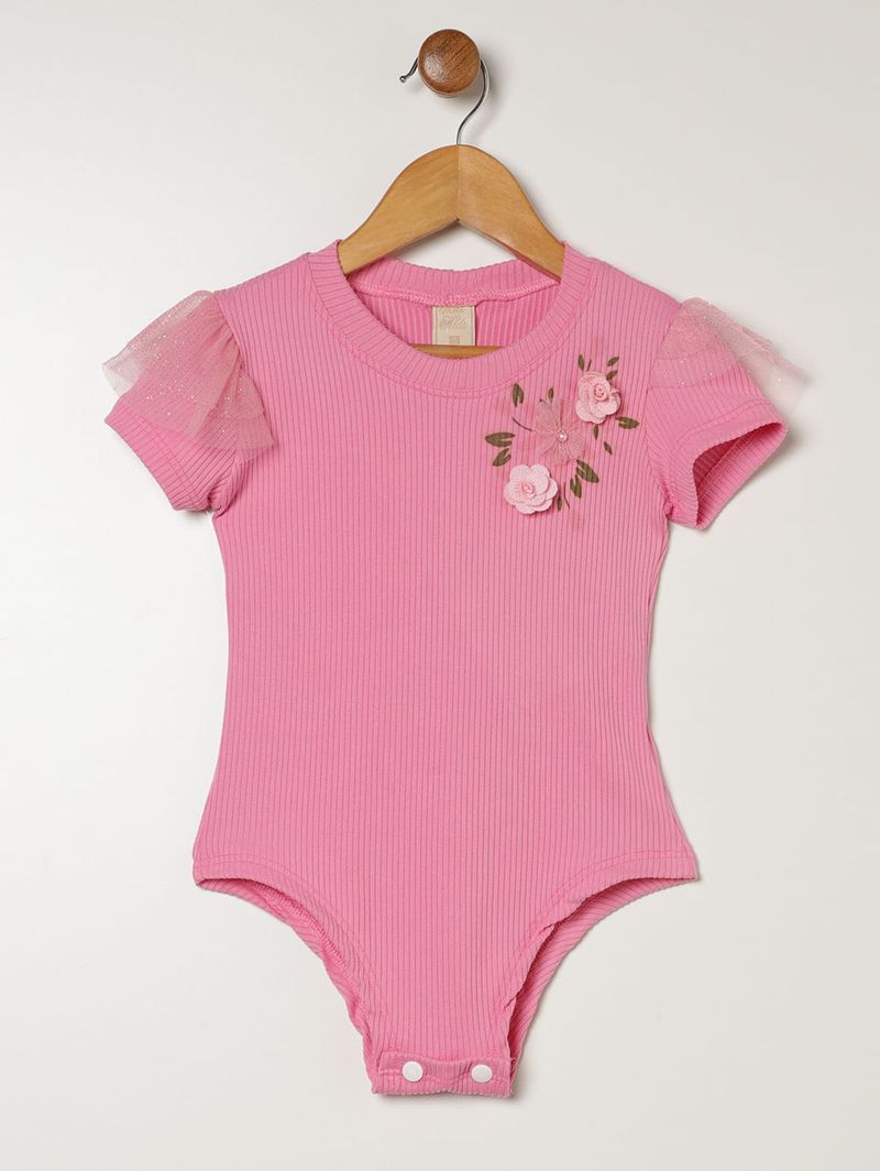 Body Canelado Infantil Para Menina - ROSA