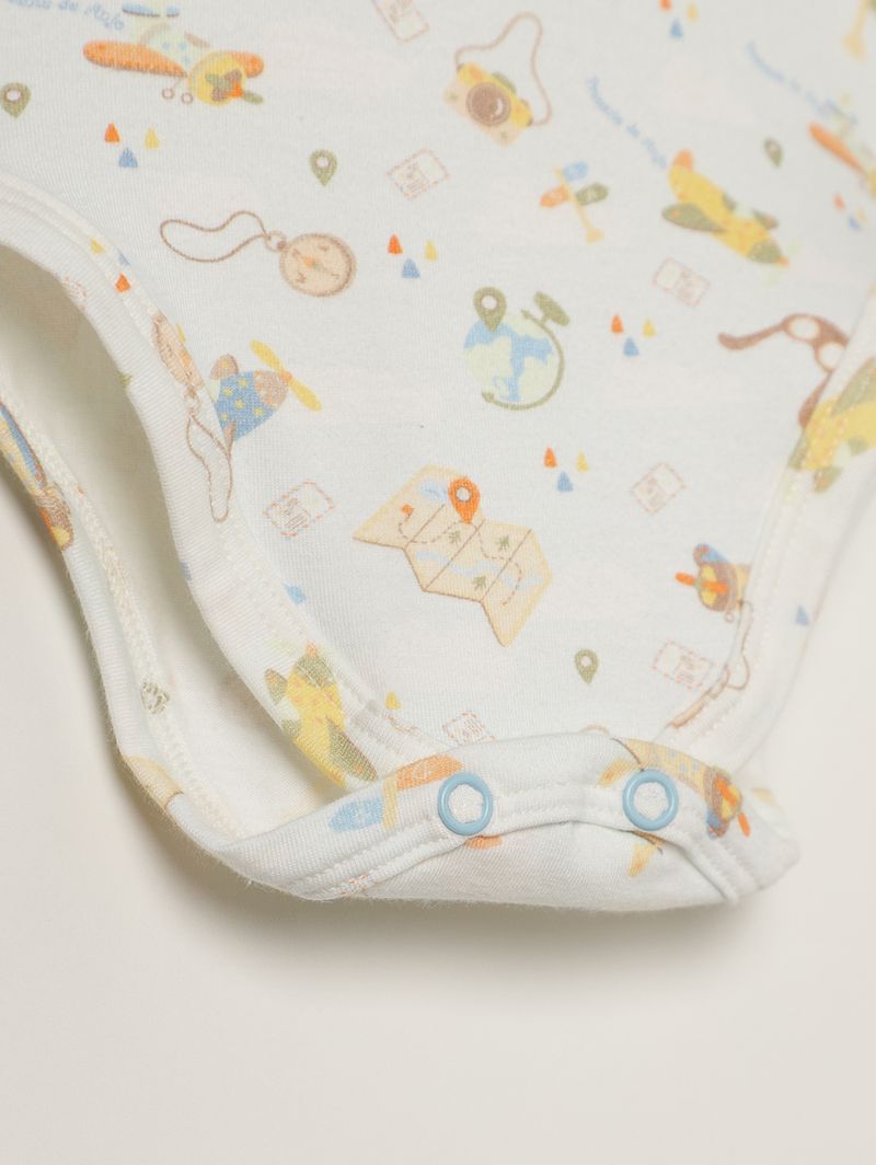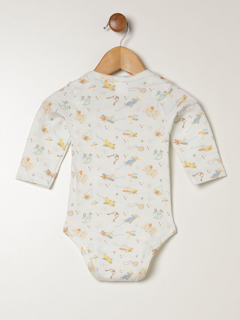 Body infantil para bebê desenvolvido em cotton, um tecido macio de algodão com uma pequena porcentagem de elastano. Apresenta gola redonda com abertura nos ombros que facilita o vestir, mangas compridas e fechamento entrepernas por botões de pressão. O seu diferencial fica por conta da estampa em toda a extensão da peça que a deixa muito mais delicada. A peça perfeita para garantir muito mais beleza ao seu bebê!\n\nTecido: Cotton\nComposição: 96% algodão, 04% elastano