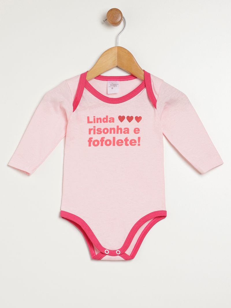Body Manga Longa Infantil Para Bebê- Rosa Claro