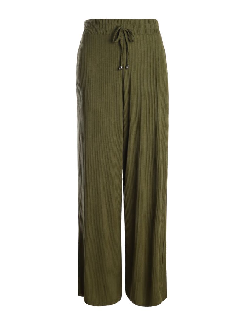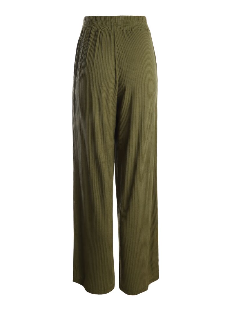 Calça feminina desenvolvida em malha canelada, um tecido macio e confortável, com listras em relevo na posição vertical. Possui modelagem reta com caimento confortável, cintura alta, cós elástico com cordão decorativo, bolsos frontais funcionais e acabamentos simples. Aposte nessa peça para criar looks comfys e moderninhos e arrase no seu dia a dia!n\nTecido: Malha Canelada\nComposição: 93% viscose, 07% elastano
