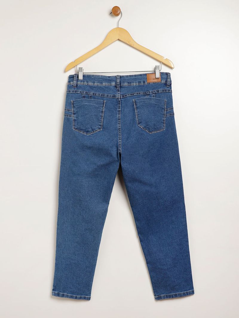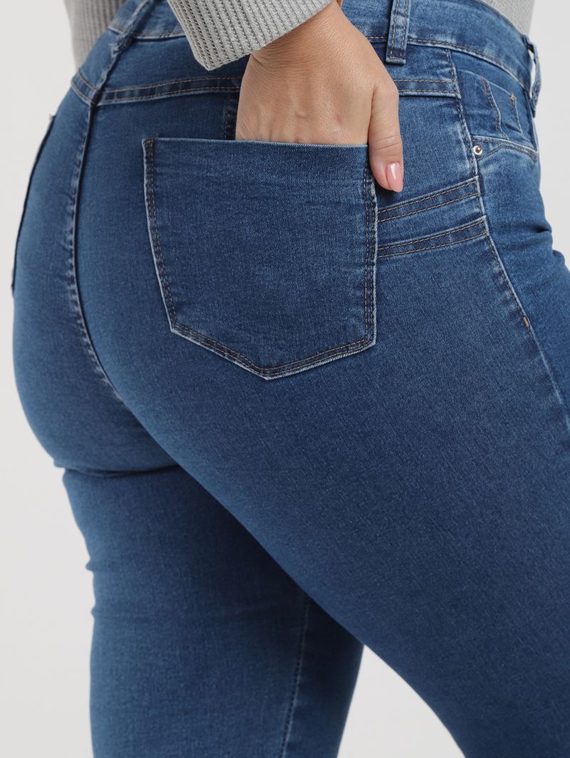 Calça feminina desenvolvida em jeans com lavagem tradicional, um clássico que moderniza as produções. O modelo cigarrete possui caimento ajustado ao corpo na medida certa e conta com a exclusiva tecnologia "Levanta Bumbum" com pences laterais que valorizam as formas e deixam tudo lá em cima. Apresenta cintura alta, cós com passantes para cinto e fechamento frontal por zíper e botão. Seus bolsos frontais são decorativos e os posteriores funcionais. Aposte em conforto e estilo para suas produções!\n\nTecido: Jeans\nLavagem: Tradicional\nModelagem: Cigarrete\nComposição: 83% algodão, 15% poliéster, 02% elastano