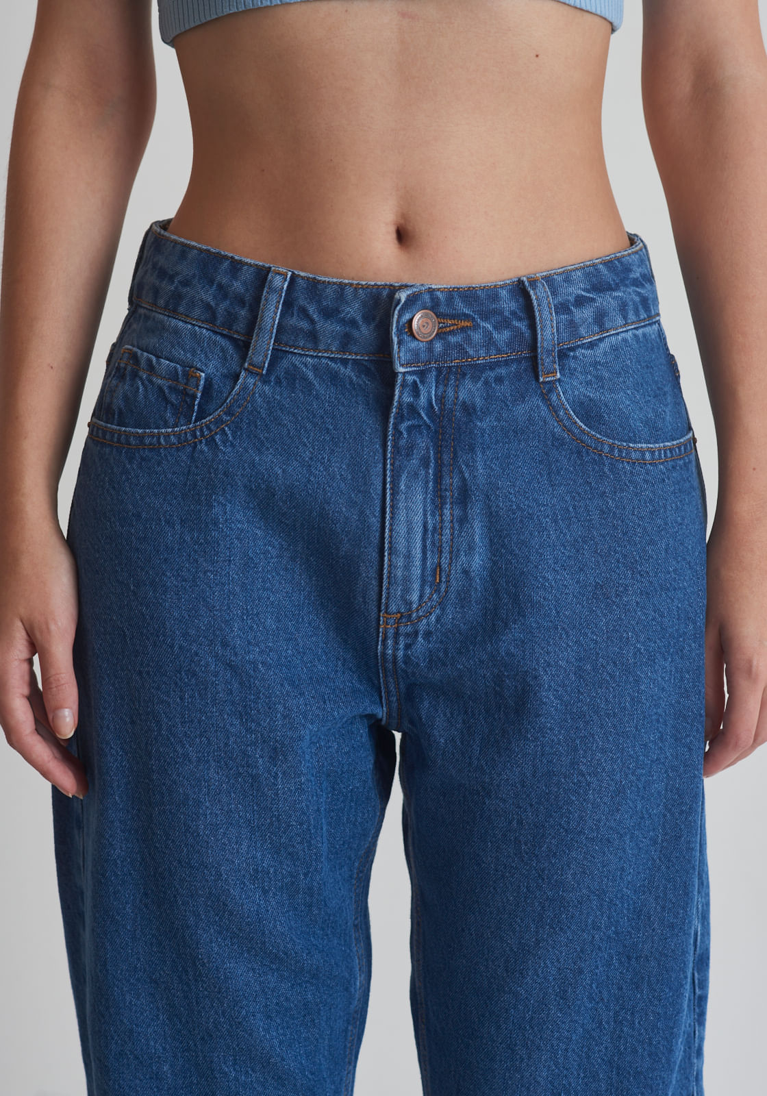 Calça jeans mom cintura média