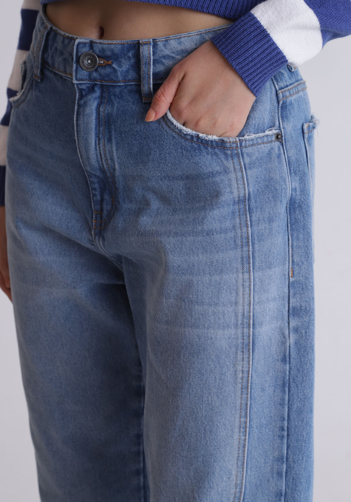 Calça jeans mom com recortes