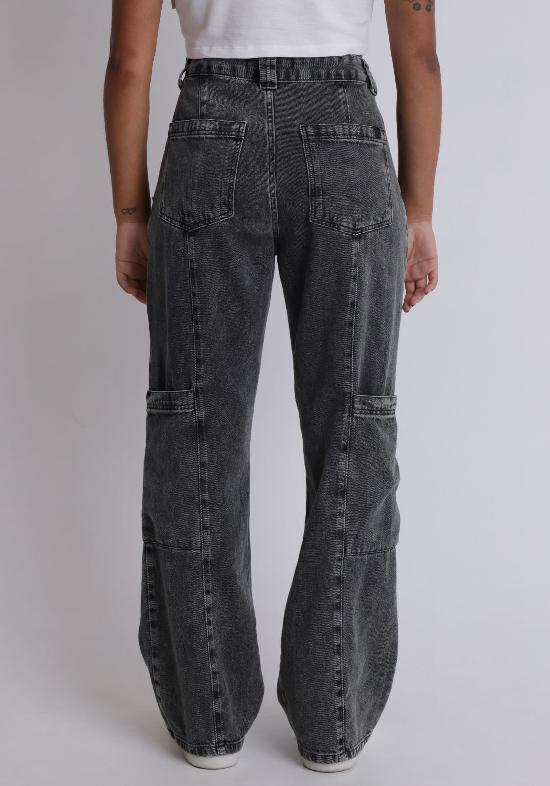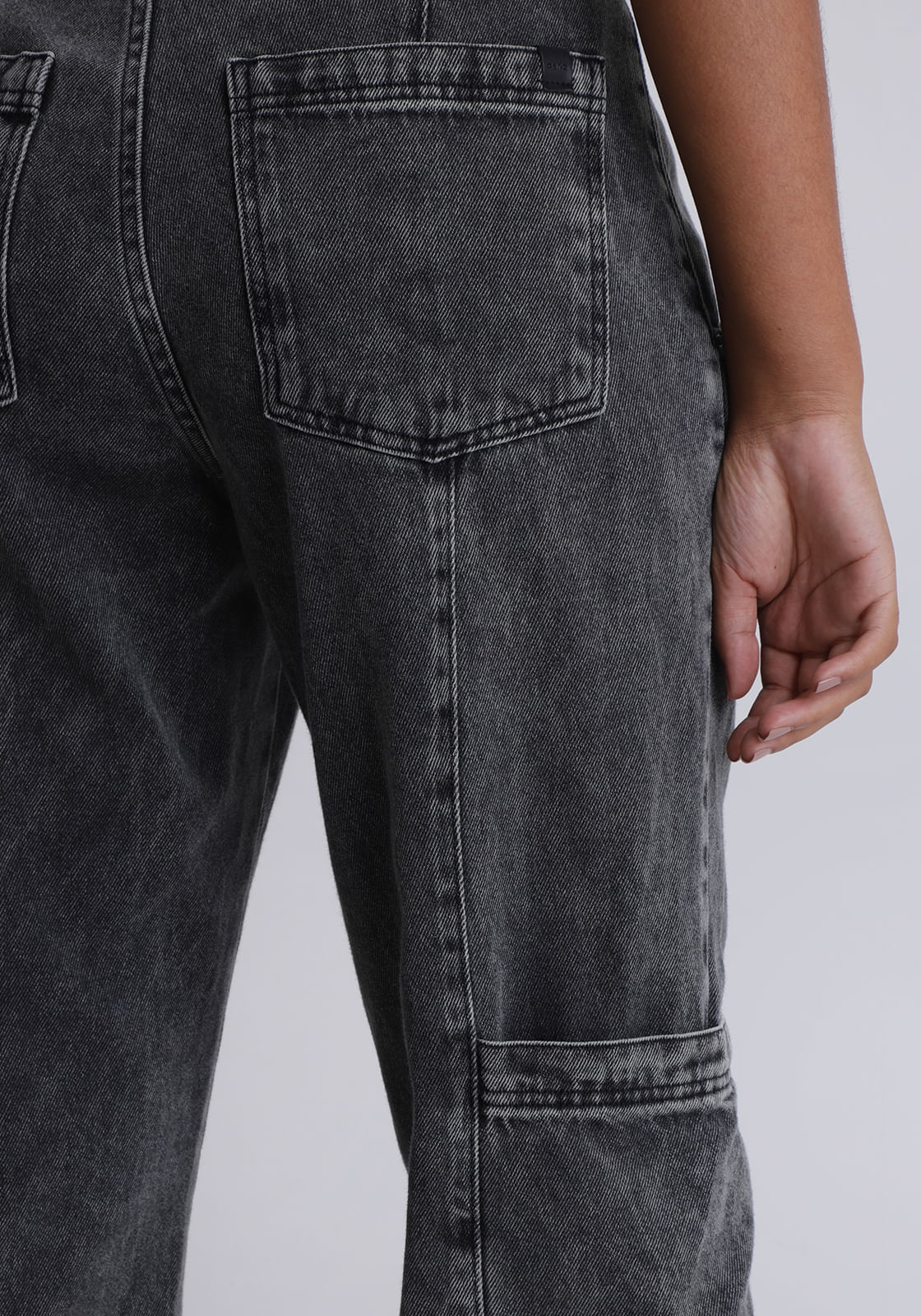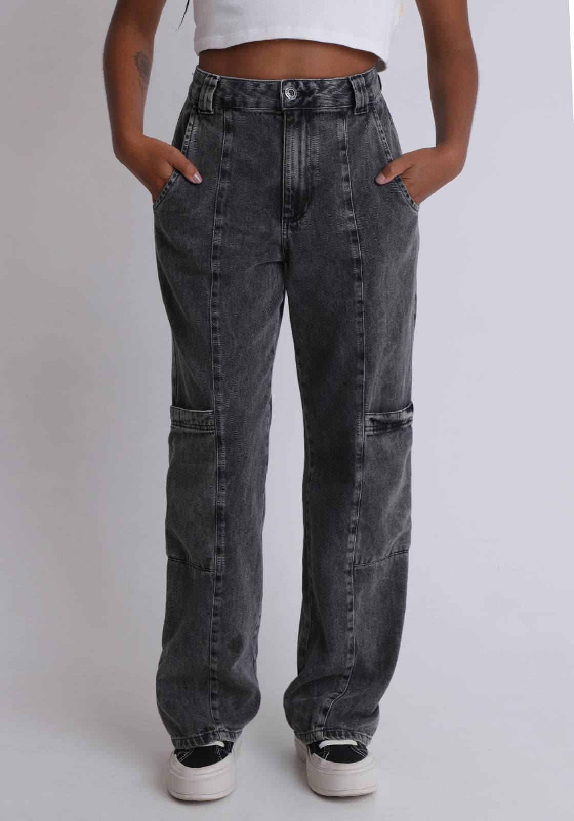 Calça Jeans Reta com Bolso Cargo Acid Wash