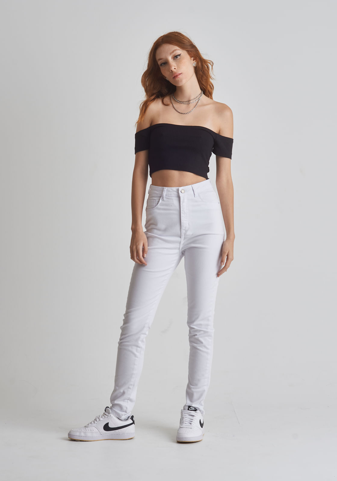 Calça jeans skinny cintura alta branca