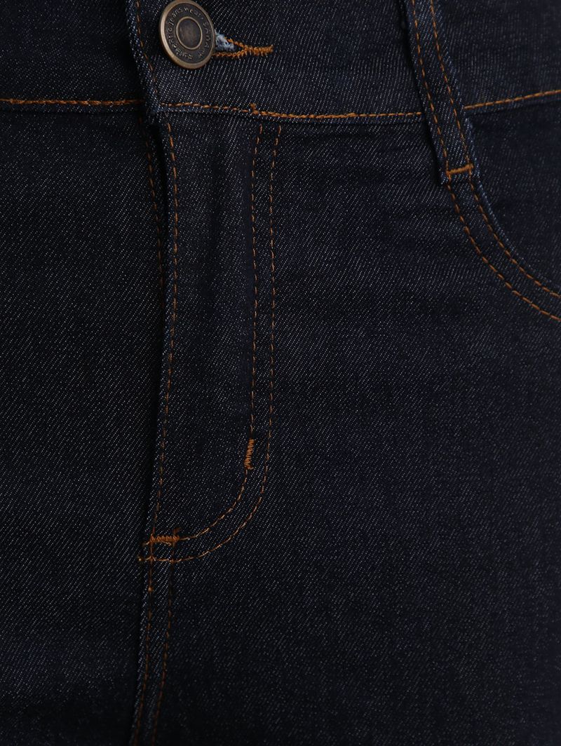 Calça feminina desenvolvida em jeans , um tecido leve e com uma pequena porcentagem de elastano que garante mais conforto ao se movimentar. Apresenta lavagem escura e modelagem skinny, uma calça mais ajustada ao corpo, com corte justo desde o quadril até a barra. Possui cintura alta, cós com passantes para cinto, fechamento frontal por botão de casa e zíper, bolsos frontais decorativos e posteriores funcionais, além de barra com acabamento simples. O seu diferencial fica por conta de costuras em tom contrastante. A calça skinny é uma peça atemporal e curinga no guarda-roupas, podendo ser usada tanto com tênis para um visual despojado ou com salto alto para um looks mais elegante!