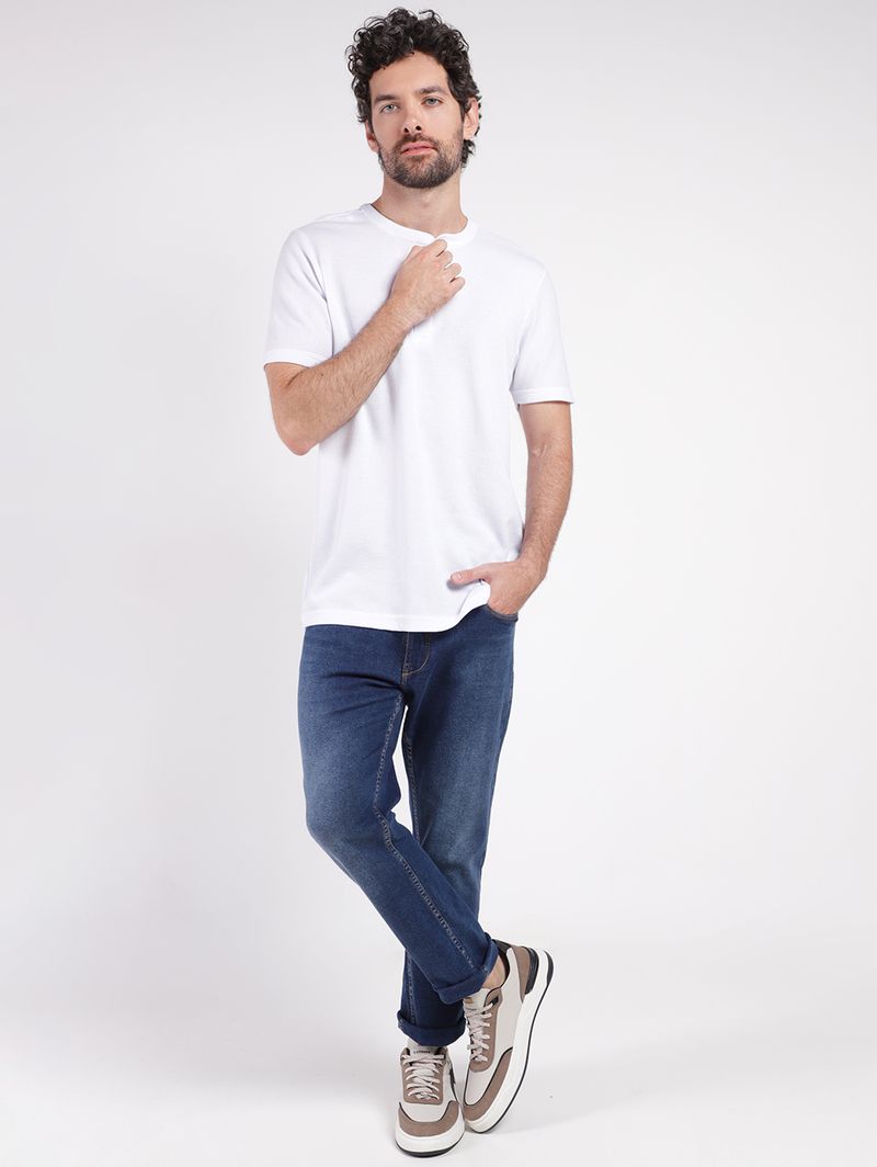 Calça masculina desenvolvida em jeans , um tecido super encorpado e com ótimo caimento no corpo, além de ser versátil e conter elastano na composição do tecido que garante maior conforto ao se movimentar. O modelo conta com lavagem estonada e modelagem slim , característica por um corte ajustado ao corpo, mas sem ser super apertado. Apresenta cós com passantes para cinto, fechamento frontal por botão de casa e zíper, bolsos frontais e posteriores funcionais ideais para guardar pequenos objetos e barra com acabamento simples. Possui diferencial de costuras em tom contrastante. A calça que vai garantir looks incríveis no seu guarda-roupas!