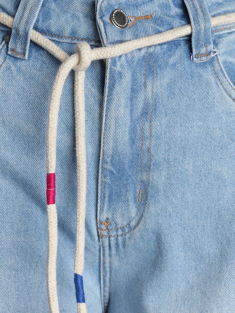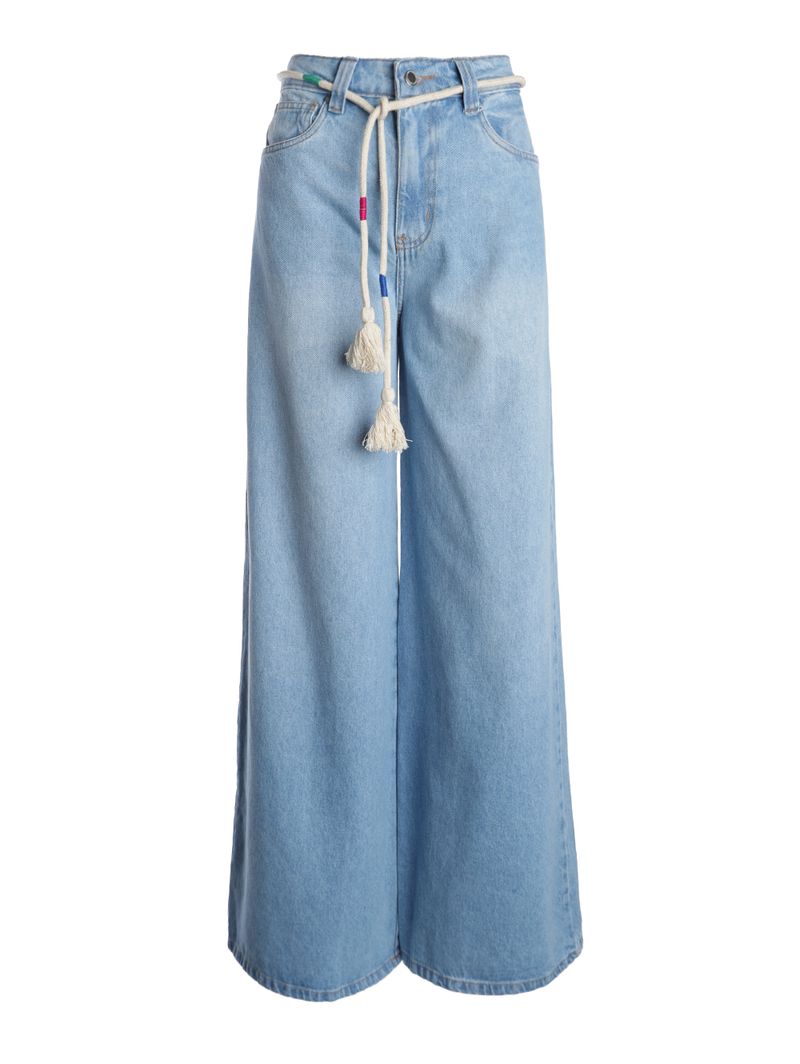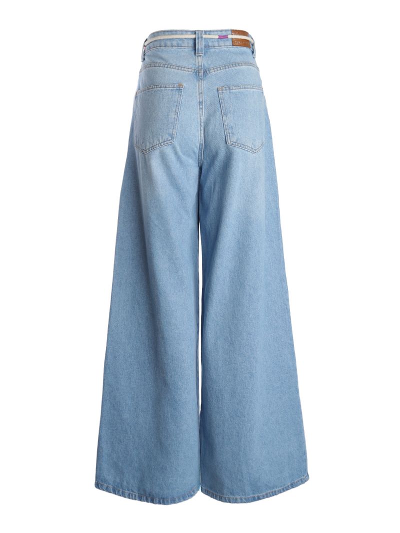 Calça Jeans Super Wide Cropped Com Cinto Feminina AZUL