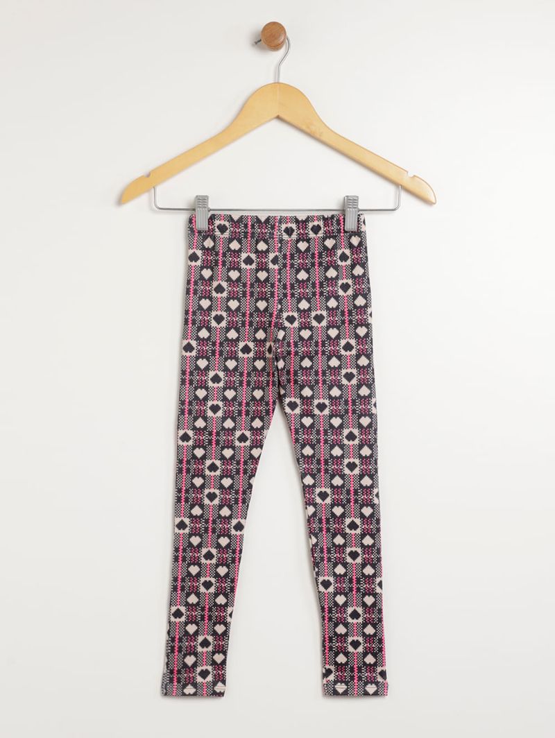 Calça infantil para menina desenvolvida em malha crepe sublimada com estampas vibrantes e delicadas que garantem conforto e estilo. Possui modelagem legging com caimento ajustado ao corpo, cós elástico e acabamentos simples. Ideal para o dia a dia ou ocasiões especiais, essa peça oferece ajuste perfeito e liberdade de movimento para as pequenas se divertirem com charme e praticidade!\n\nTecido: Malha Crepe Sublimada\nComposição: 95% poliéster, 05% elastano