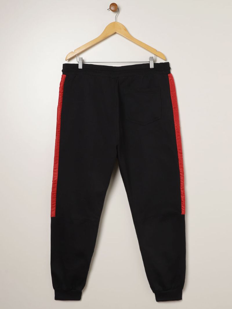 Calça masculina desenvolvida em moletom um tecido macio com parte interna flanelada que confere conforto térmico e físico. Apresenta modelagem jogger, cós elástico com cordão funcional para ajuste, bolsos frontais e um bolso posterior, todos funcionais, além de barra com acabamento em punho. O seu diferencial fica por conta da aplicação de tecido em tom contrastante. A peça que vai garantir muita comodidade no seu dia a dia!\n\nTecido: Moletom\nModelagem: Jogger\nComposição: 51% poliéster, 49% algodão