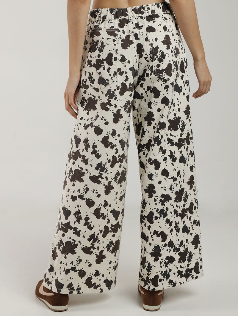 Calça Wide Leg Cow Print Autentique Feminina BEGE