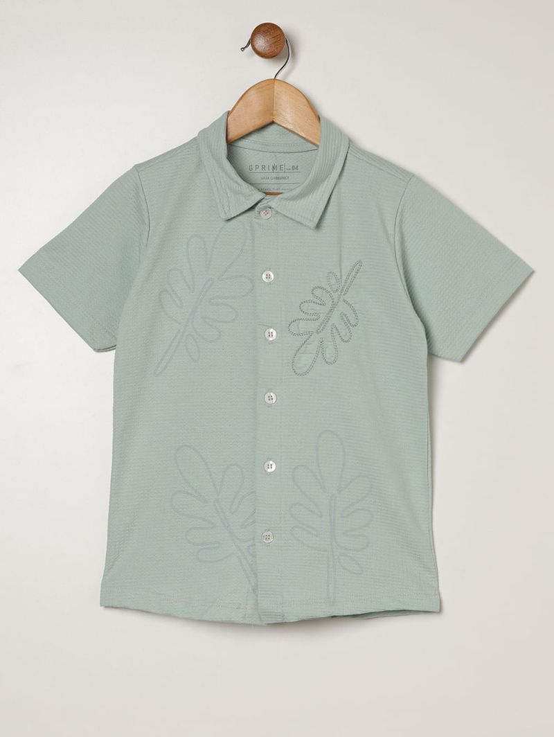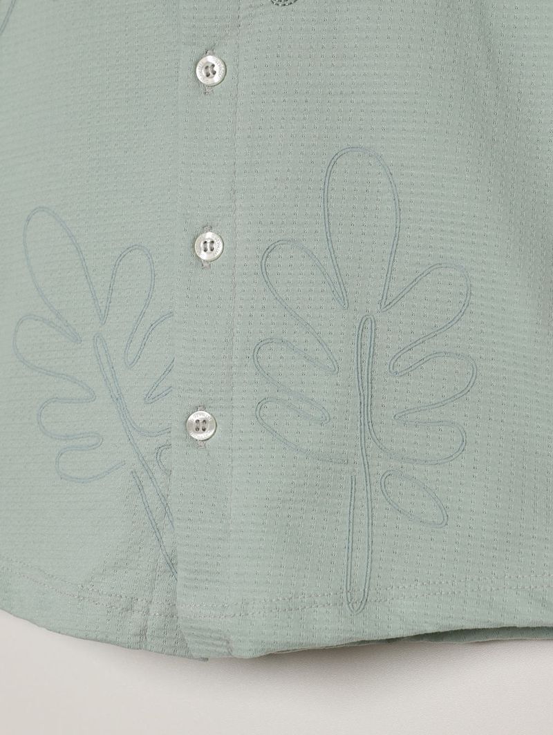 Camisa infantil para menino desenvolvida em malha texturizada, proporcionando conforto, leveza e um toque macio para o uso diário. Possui gola de ponta com reforço interno, garantindo melhor estrutura, além de mangas curtas, fechamento frontal por botões de casa e acabamentos simples que deixam a peça prática e versátil. O diferencial fica por conta dos bordados e da estampa tropical, que adicionam charme e um visual moderno para acompanhar os pequenos em momentos de diversão com estilo!\n\nTecido: Malha Texturizada\nComposição: 57% algodão, 43% poliéster
