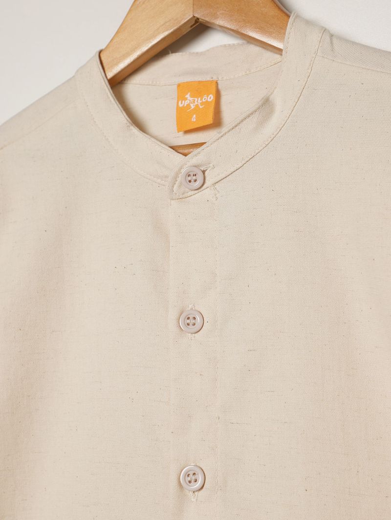Camisa Linho Gola Portuguesa Infantil Para Menino- OFF WHITE