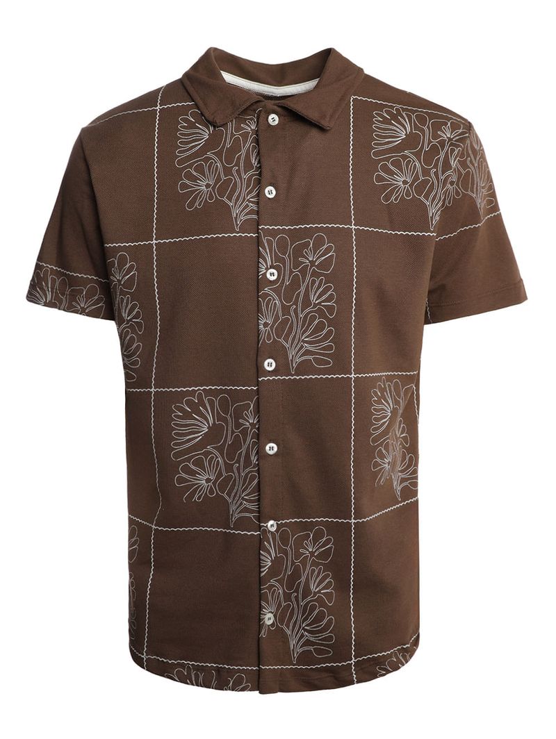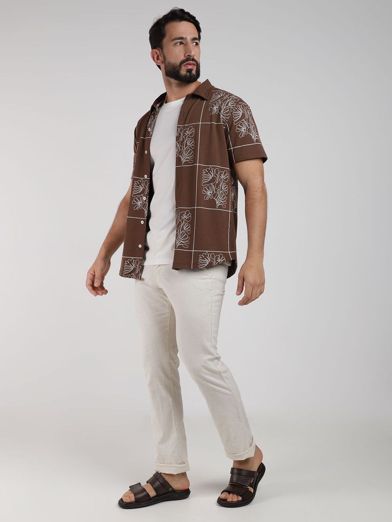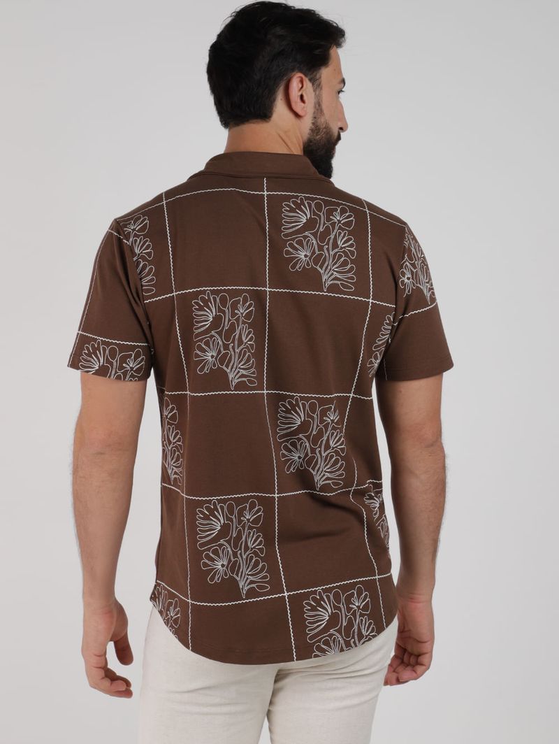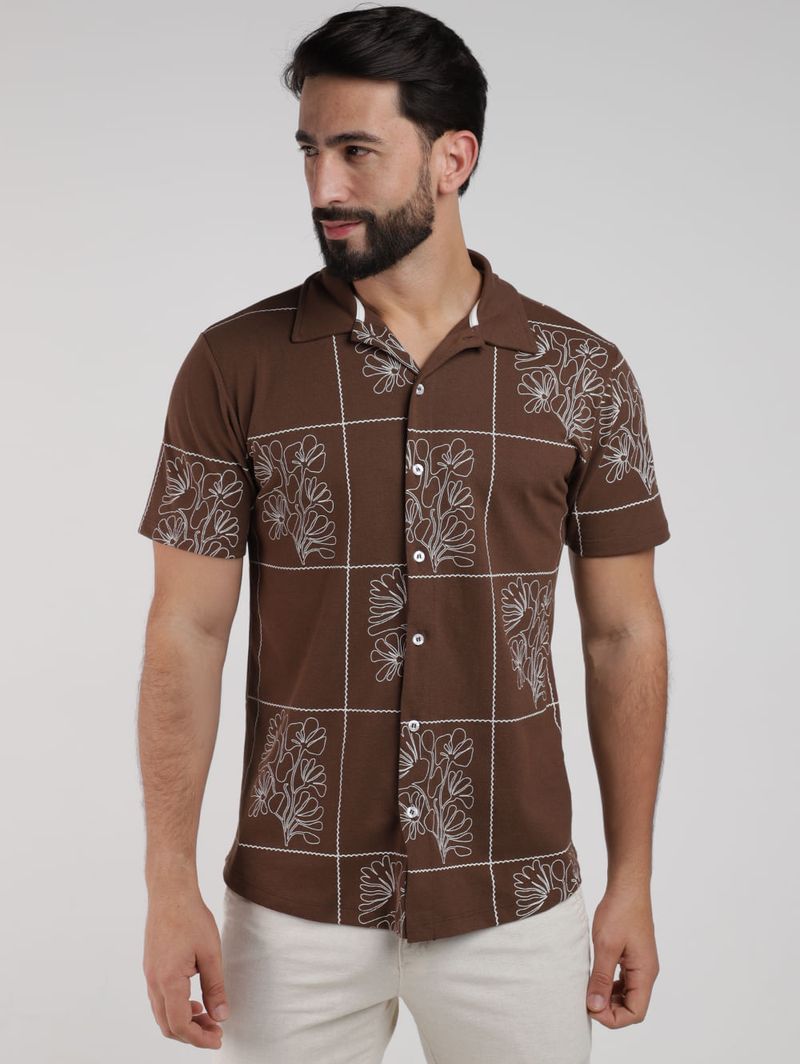 Camisa Malha Estampada Manga Curta Masculina MARROM