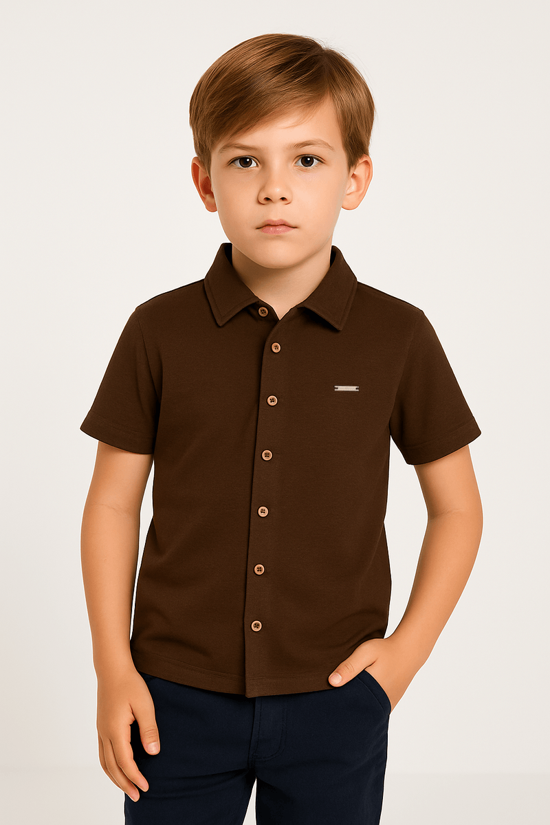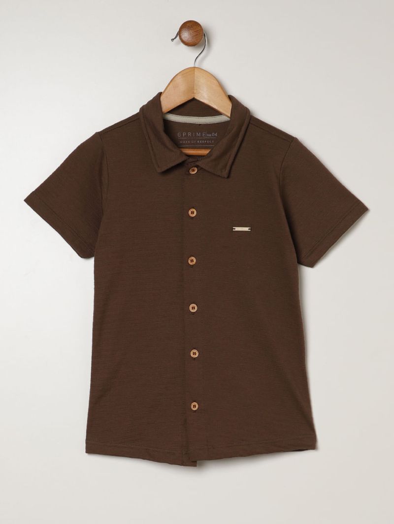 Camisa Malha Texturizada Infantil Para Menino - MARROM