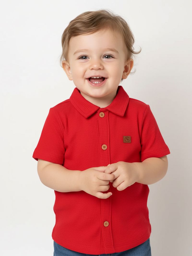 Camisa Malha Tricot Infantil Para Menino - VERMELHO