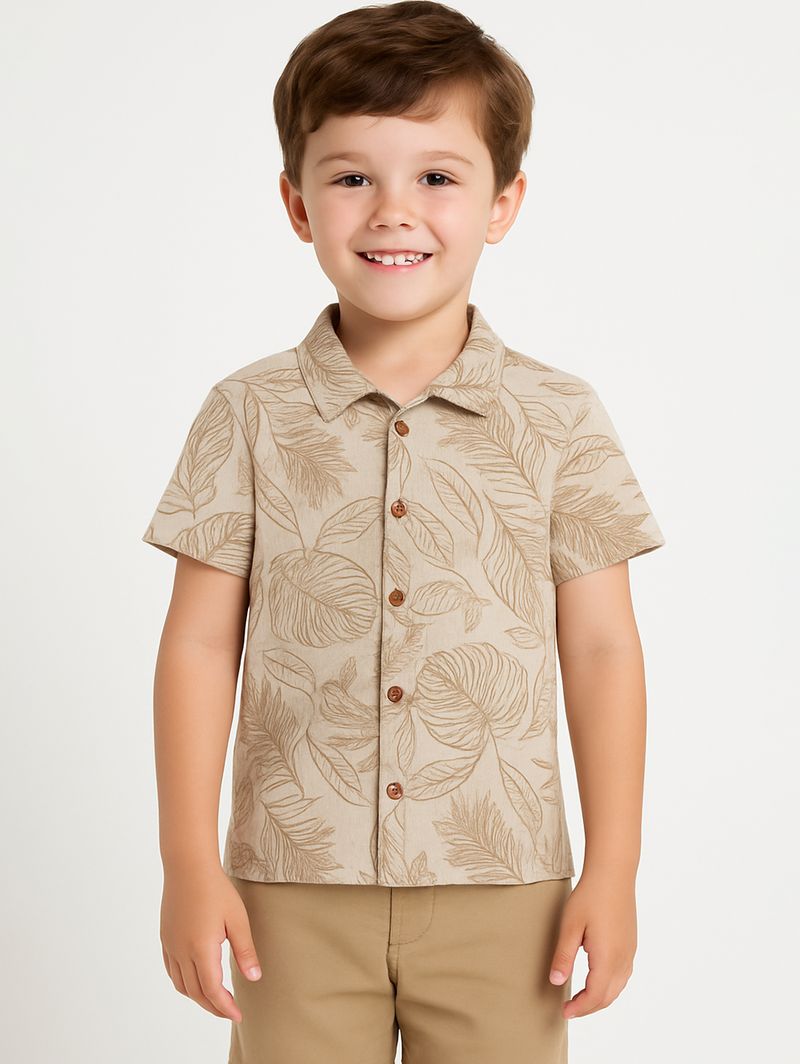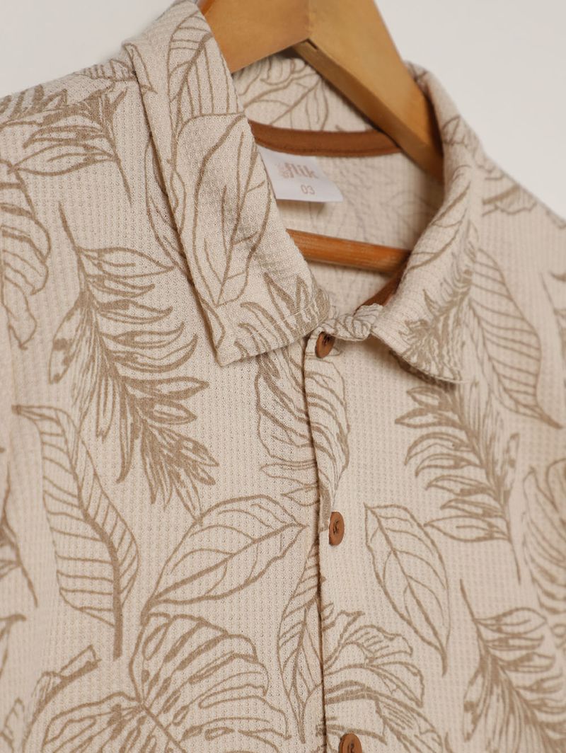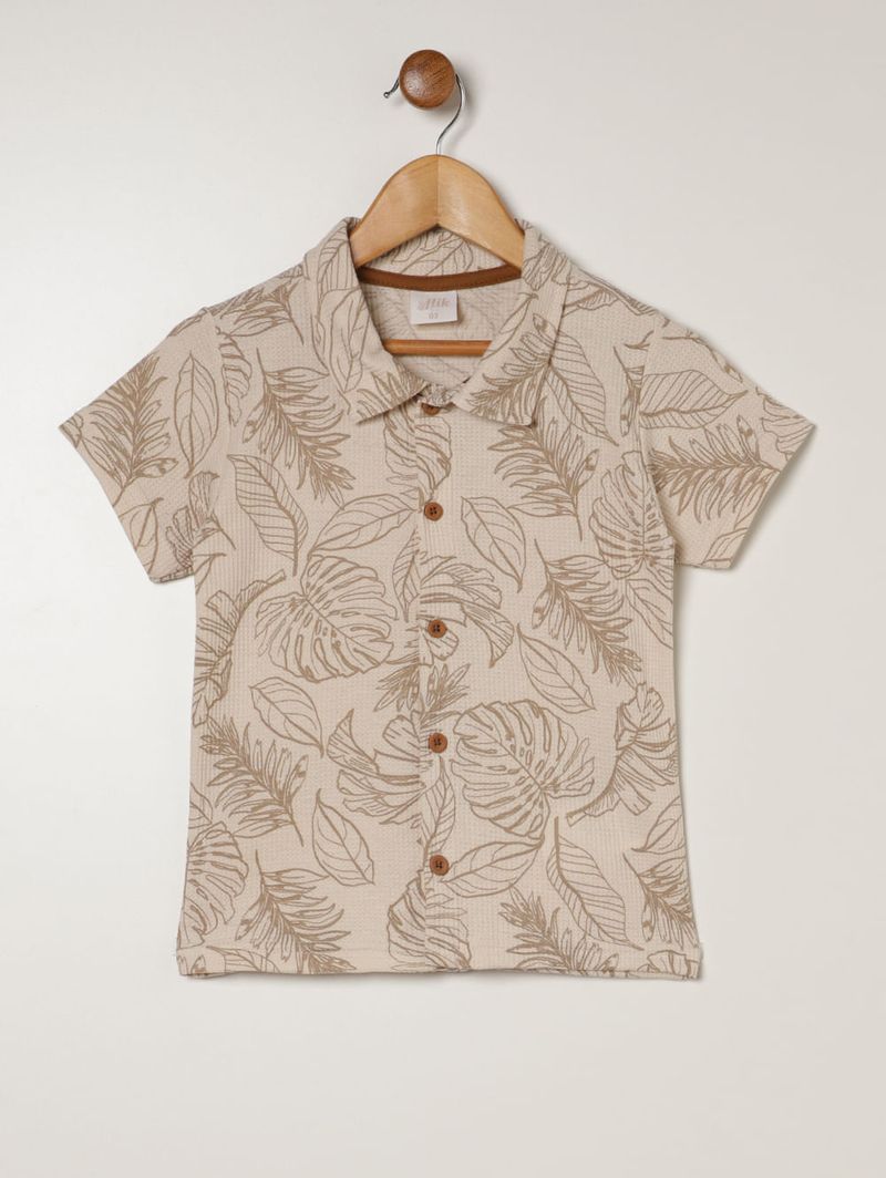 Camisa Malha Waffer Infantil Para Menino - CREME