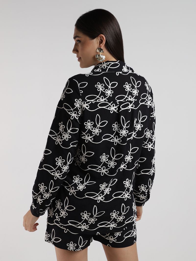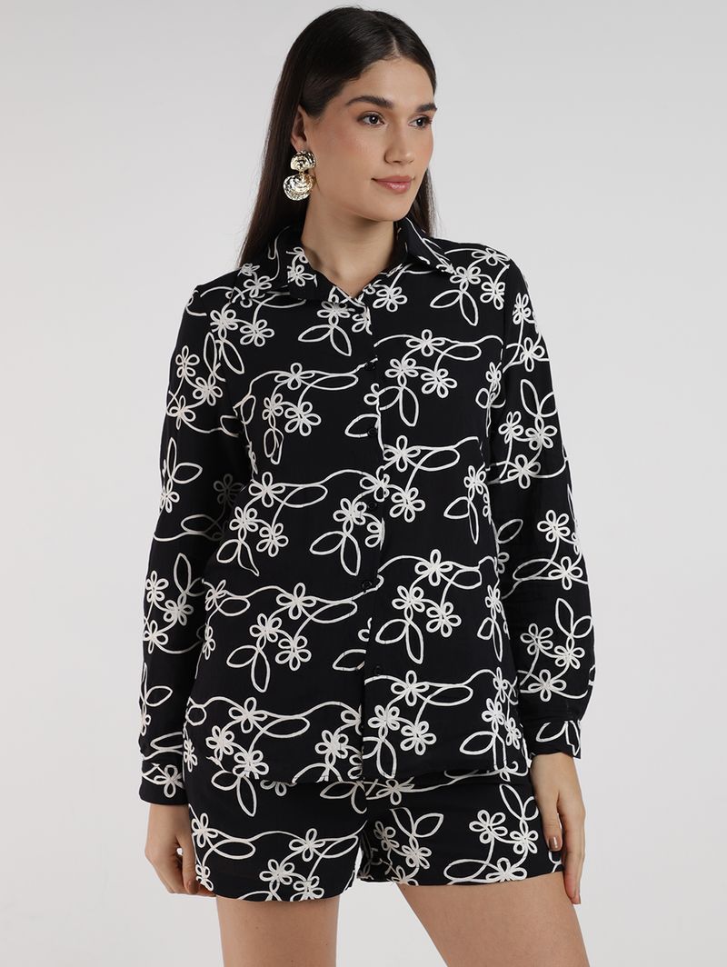 Camisa Textura Flores Eagle Rock Feminina PRETO