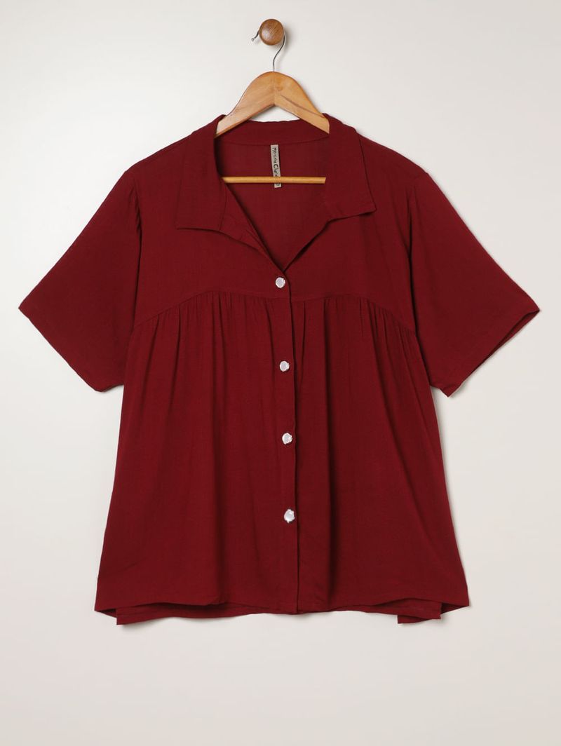 Camisa Viscolinho Plus Size Feminina BORDO