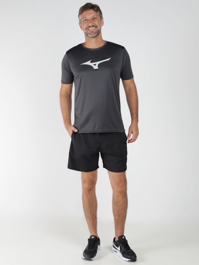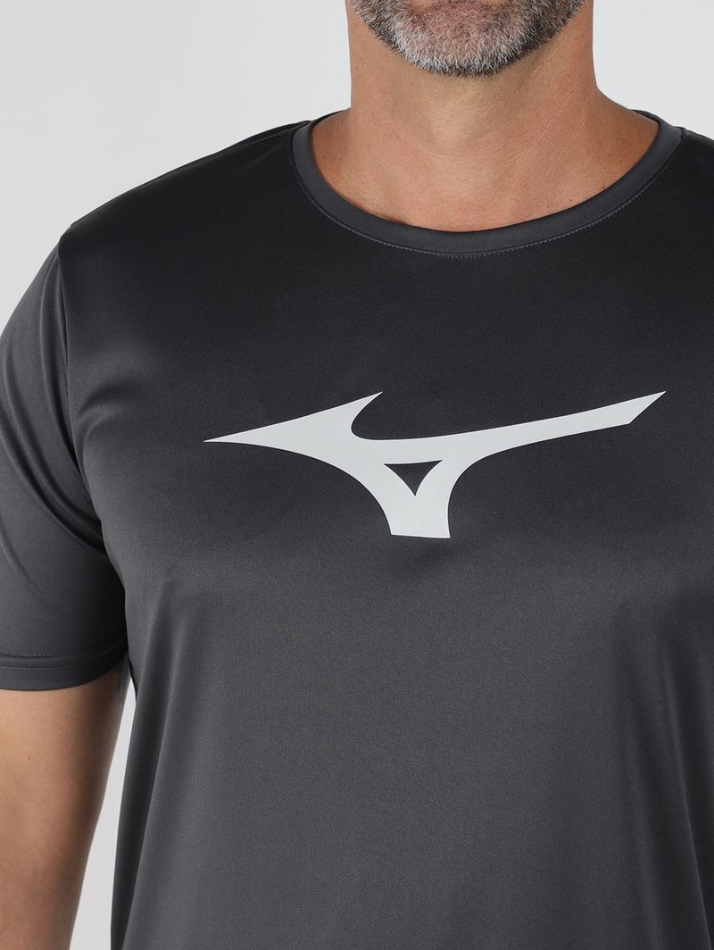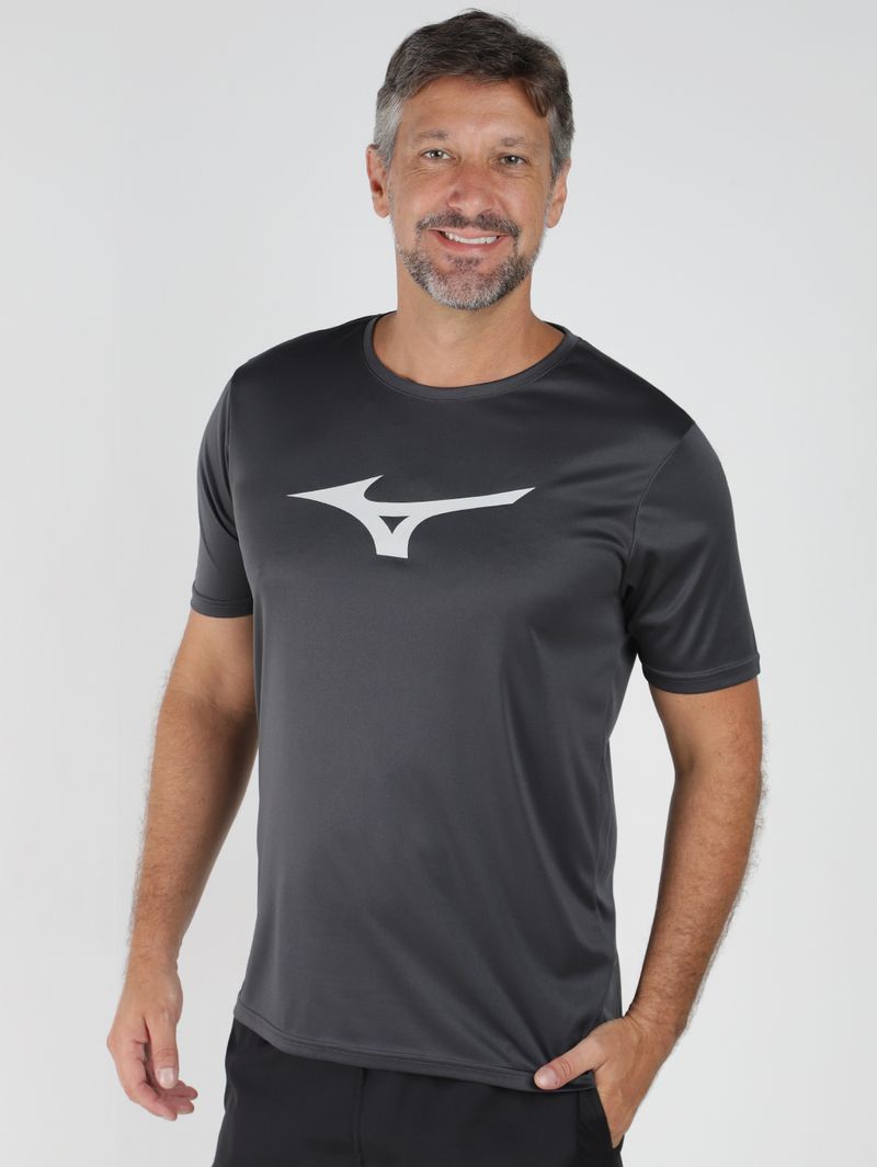 Camiseta esportiva masculina é a escolha ideal para quem busca desempenho, leveza e conforto durante treinos e provas. Confeccionada em malha dry de rápida absorção, ajuda a manter o corpo seco ao facilitar a evaporação do suor, garantindo mais frescor mesmo em atividades intensas. O modelo possui gola redonda com reforço interno, mangas curtas e barra com acabamento simples, oferecendo caimento confortável e liberdade de movimento. O logo da Mizuno na parte frontal adiciona identidade esportiva, tornando a peça funcional e estilosa para o seu dia a dia esportivo!\n\nTecido: Malha dry\nComposição: 100% poliéster