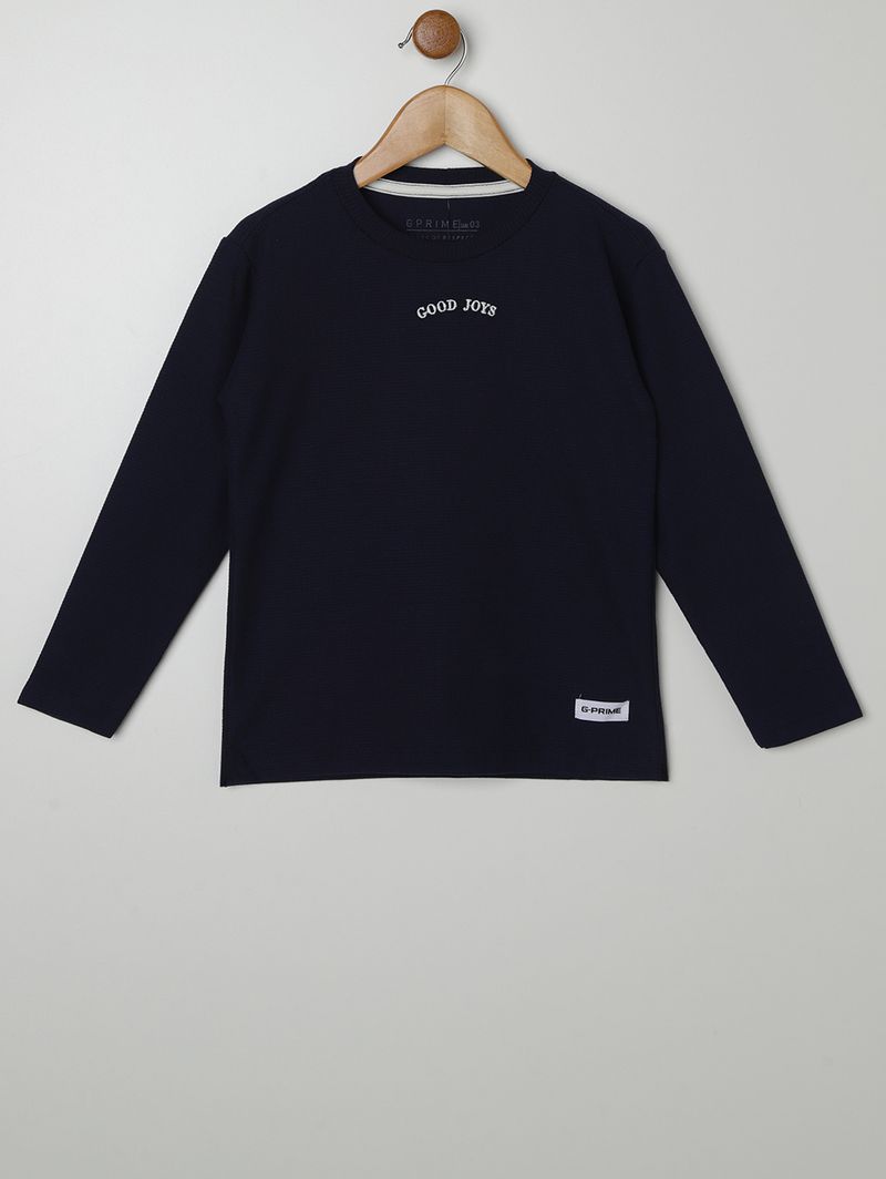 Camiseta Malha Manga Longa Infantil Para Menino- MARINHO