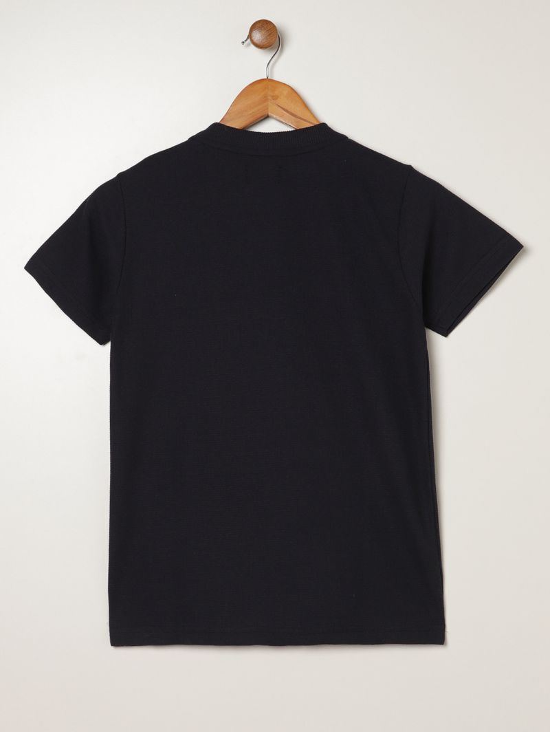 Camiseta juvenil masculina confeccionada em malha texturizada, combinação de algodão e poliéster que garante toque macio, leveza e conforto para o uso no dia a dia. O modelo apresenta gola redonda canelada com reforço interno, mangas curtas e barra com acabamento simples, oferecendo caimento prático e versátil para acompanhar todas as atividades dos meninos. Uma peça moderna, fácil de combinar e perfeita para compor looks casuais com estilo!\n\nTecido: malha texturizada\nComposição: 50% algodão, 50% poliéster