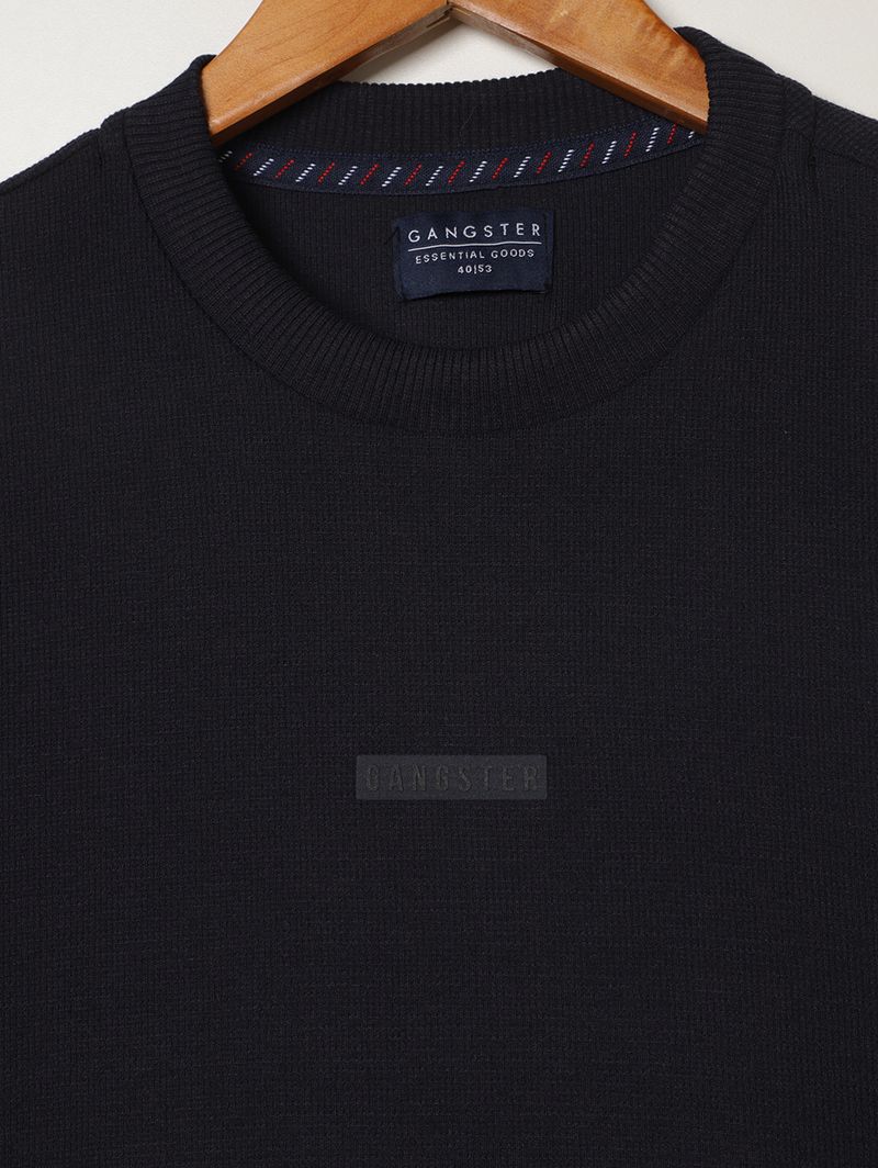 Tecido: malha texturizada Composição: 50% algodão, 50% poliéster