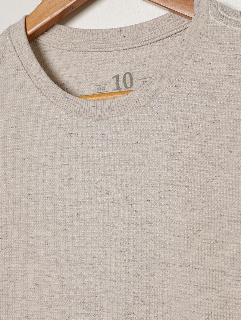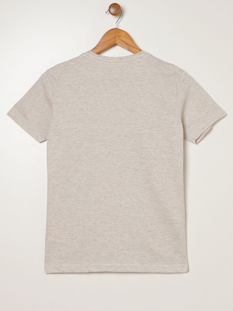 Camiseta juvenil para menino desenvolvida em malha texturizada com mistura de fibras que garante toque macio, leveza e conforto para o dia a dia. Possui gola redonda reforçada internamente, mangas curtas e acabamentos simples, oferecendo praticidade e excelente caimento. Com design moderno e proposta básica, é uma peça versátil e fácil de combinar, perfeita para compor looks casuais com estilo e conforto em qualquer ocasião!\n\nTecido: Malha Texturizada\nComposição: 68% algodão, 22% poliéster, 10% viscose