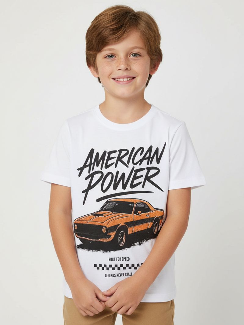 Camiseta infantil para menino desenvolvida em meia malha 100% algodão, que proporciona toque suave, conforto e respirabilidade durante o uso. Possui gola redonda com reforço interno, mangas curtas e acabamentos simples, garantindo caimento leve e liberdade de movimentos. O destaque fica por conta da estampa frontal de carro vintage, que traz um visual divertido e cheio de estilo. Uma peça confortável e cheia de personalidade, feita para acompanhar os meninos em todas as aventuras do dia!