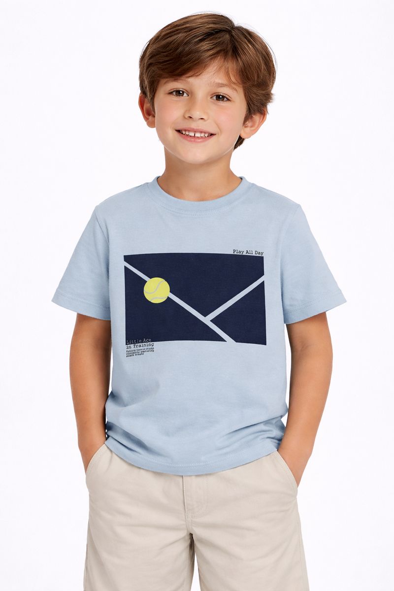Camiseta infantil para menino desenvolvida em meia malha de algodão, que oferece toque macio, leveza e conforto para o dia a dia. Possui gola redonda com reforço interno, mangas curtas e barra com acabamento simples, garantindo ótimo caimento e liberdade de movimento. O diferencial fica por conta da estampa na parte frontal, que adiciona um toque divertido e moderno ao visual. Ideal para compor produções casuais e confortáveis com muito estilo!\n\nTecido: Meia malha\nComposição: 100% algodão