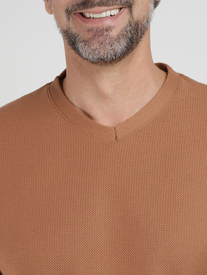 Camiseta Manga Curta Texturizada Masculina MARROM