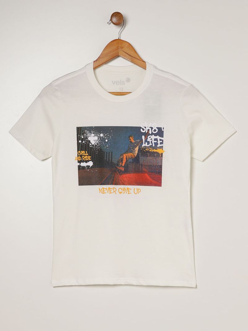 Camiseta Manga Curta Vels Juvenil Para Menino- OFF WHITE