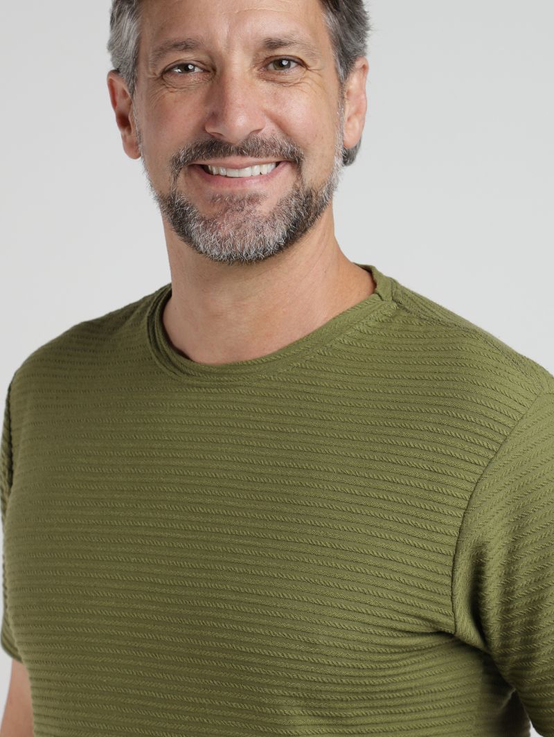 Camiseta masculina desenvolvida em malha texturizada de algodão com poliéster, que proporciona toque macio, conforto e ótima durabilidade. Possui gola redonda com reforço interno, mangas curtas e acabamentos simples, garantindo caimento leve e visual versátil. Com design básico e atemporal, é uma peça essencial para compor produções casuais com praticidade e estilo no dia a dia!\n\nTecido: Malha Texturizada\nComposição: 65% algodão, 35% poliéster