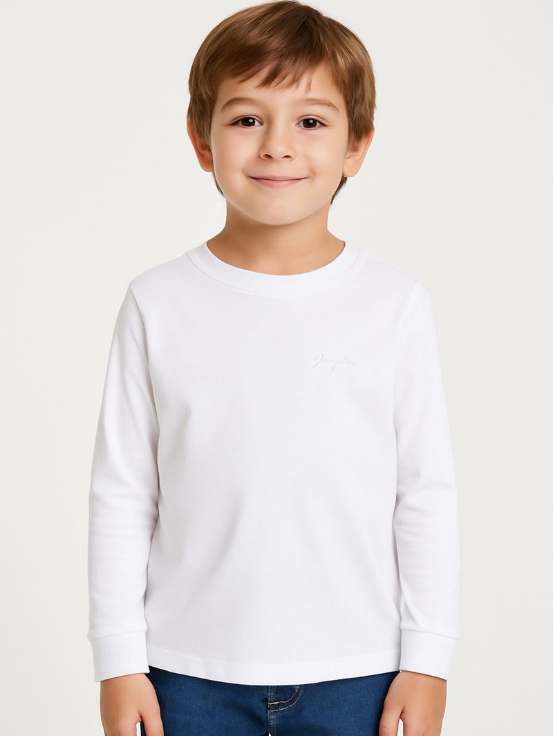 Camiseta Manga Longa Infantil Para Menino - BRANCO