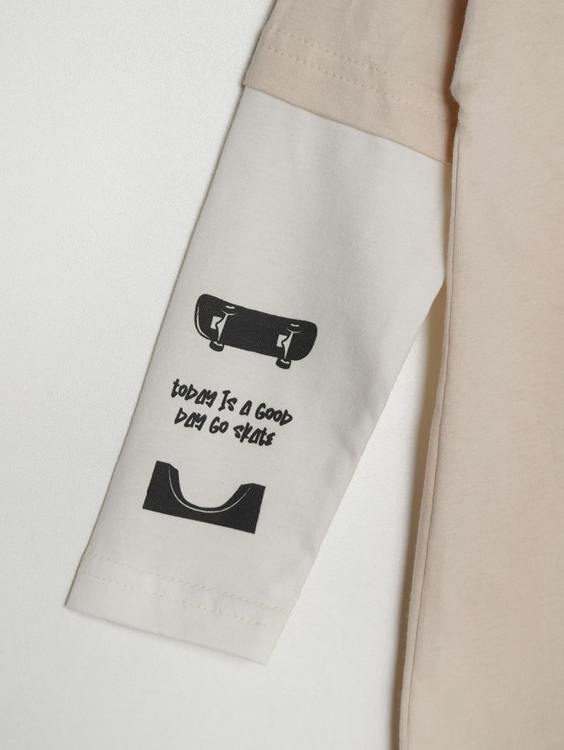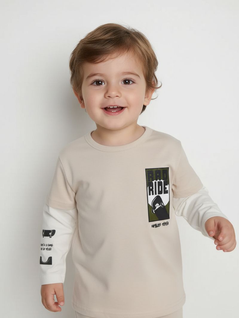 Camiseta Manga Longa Infantil Para Menino - NATURAL