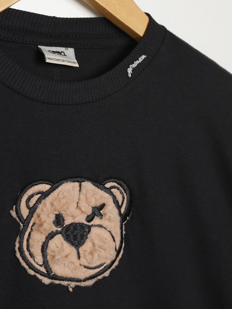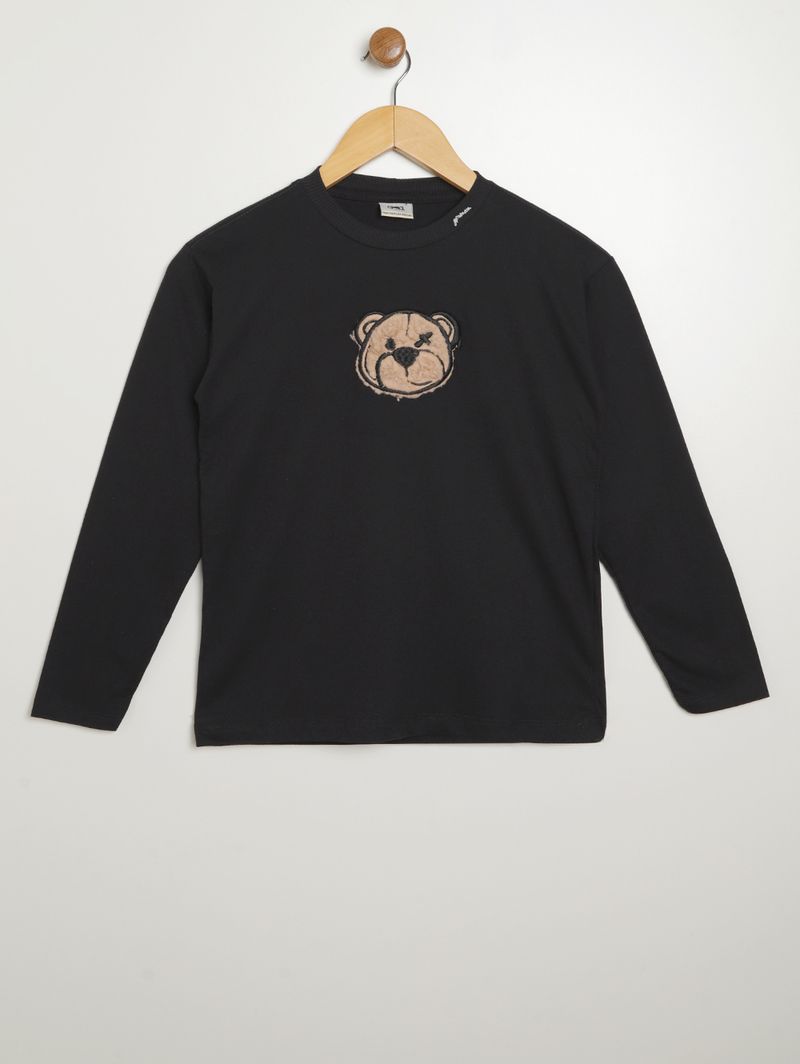 Camiseta Manga Longa Juvenil Para Menino- PRETO