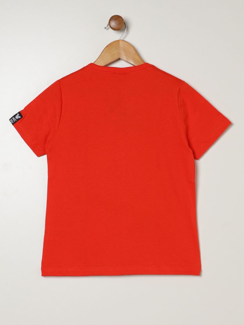 Camiseta infantil para menino confeccionada em meia malha de algodão, garantindo conforto, respirabilidade e toque macio para o dia a dia. Possui gola redonda, mangas curtas e barra com acabamento simples, oferecendo praticidade e ótimo caimento. O diferencial fica por conta da estampa frontal dos personagens da Casa do Mickey, que traz diversão e encanto ao visual dos pequenos. Ideal para compor looks leves e alegres com o toque mágico da Disney!\n\nTecido: Meia malha\nComposição: 100% algodão