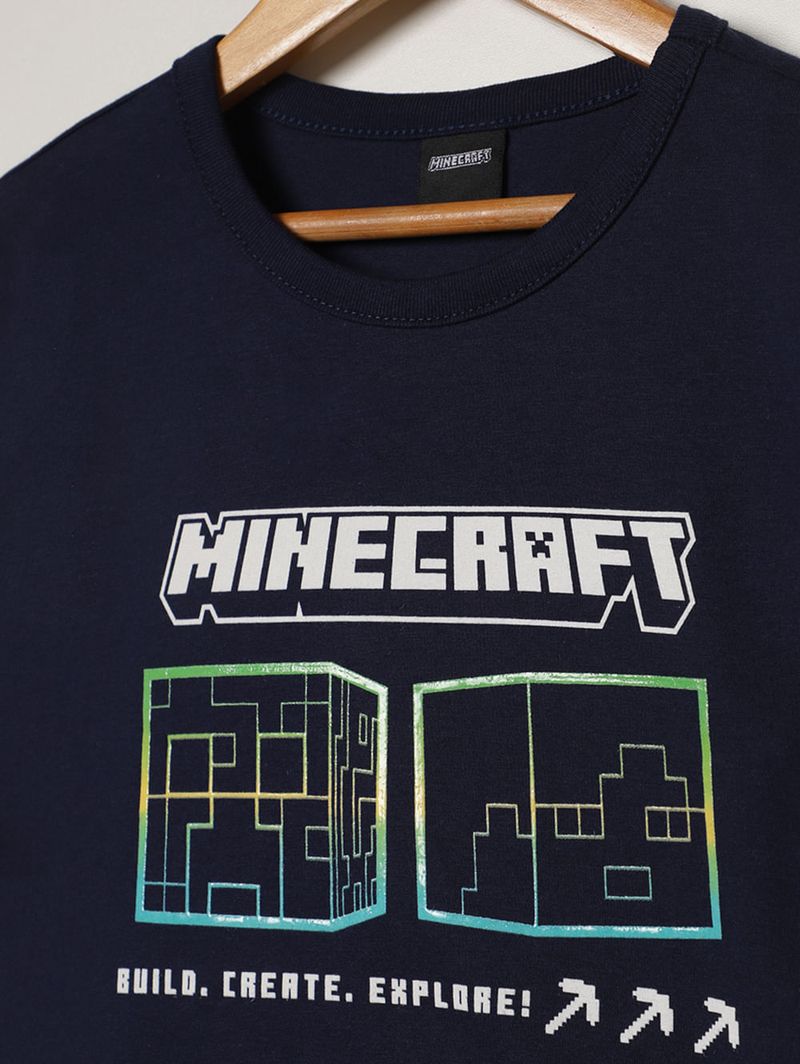 Camiseta Minecraft Juvenil Para Menino - MARINHO